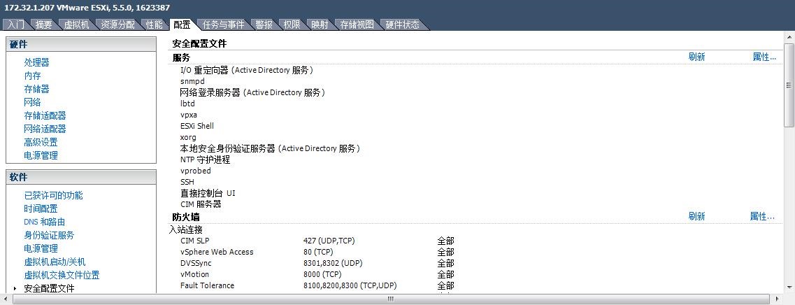 通过对ssh服务配置方式的对比和总结,就可以看到对于ESXi的一般服务和配置,一般有两种方式,一种方式是到机房,ESXi主机物理硬件所在地,通过终端控制台进行修改;另一种方式是使用vCenter或Client图形界面进行管理和修改,由于图形管理界面在加入主机时,已经输入了ESXi主机的root用户名和密码,所以也具有修改所有配置的权限。