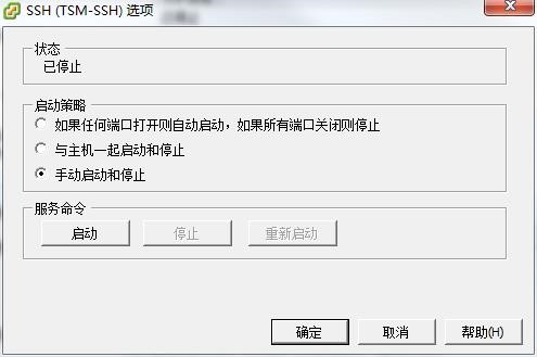 在对话框中,可以看到SSH服务默认默认处于“已停止状态”,点击选项按钮,进行进程状态更改: