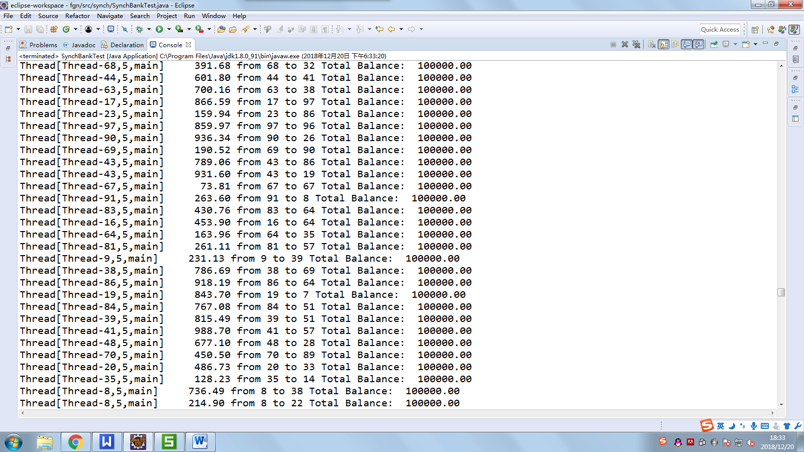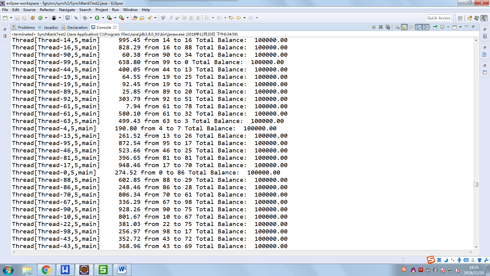 36 public void transfer(int from, int to, double amount) throws InterruptedException