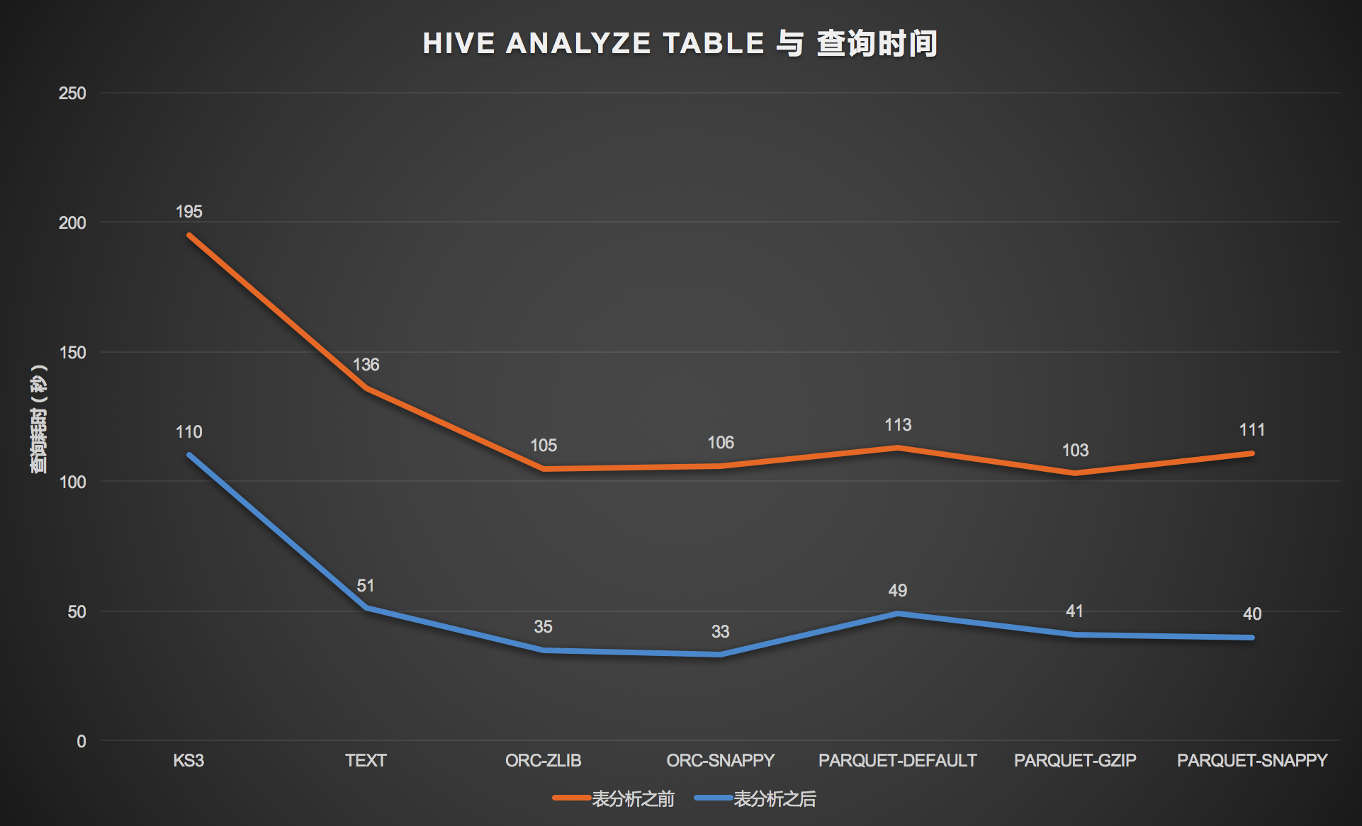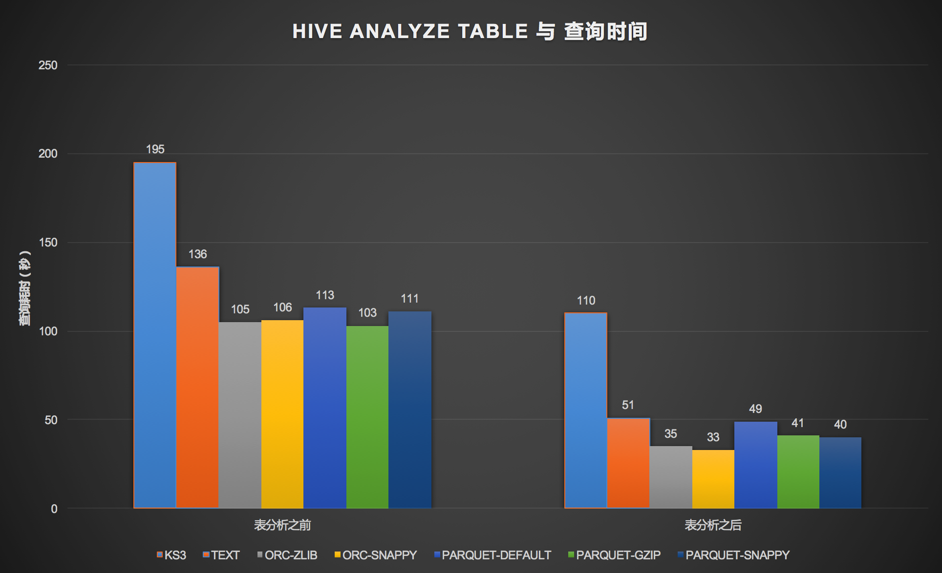 - 数据准备 选取KS3线上数据集、TPC-DS基准测试数据集作为样本。结合Hive表分析操作,对多个文件格式以及压缩算法下的数据查询时间进行比对。