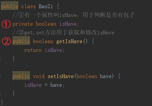 ②get/set方法用于获取和修改isHave属性。