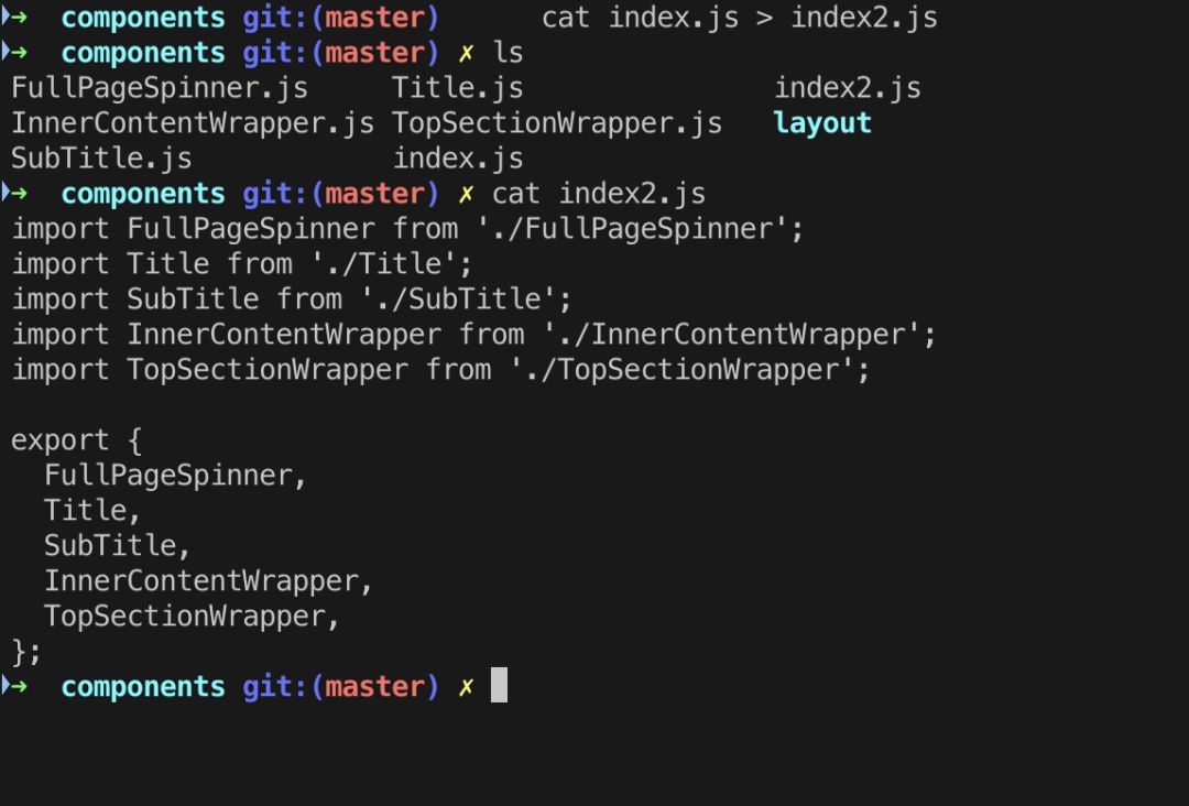 请注意,在上图中,我们用touch创建文件和cat查看文件内部的。由于新创建的index2.js文件为空,因此cat不返回任何内容。