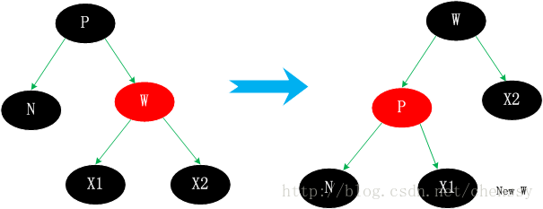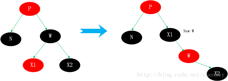 - * 策略:将兄弟节点与其左子树进行颜色互换然后进行右转