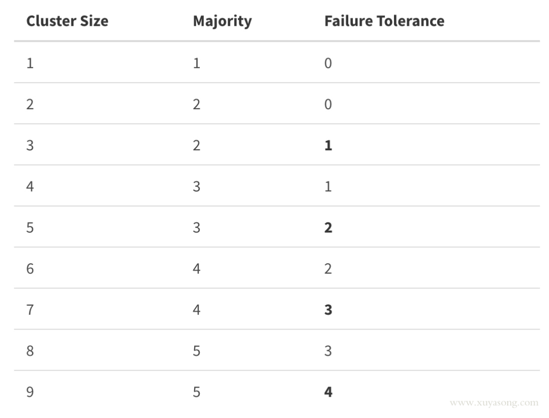 你会发现偶数节点虽然多了一台机器,但是容错能力是一样的,也就是说,你可以设置偶数节点,但没增加什么能力,还浪费了一台机器。同时etcd 是通过复制数据给所有节点来达到一致性,因此偶数的多一台机器增加不了性能,反而会拉低写入速度。