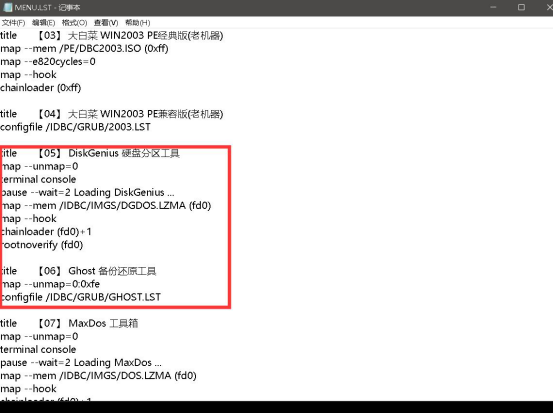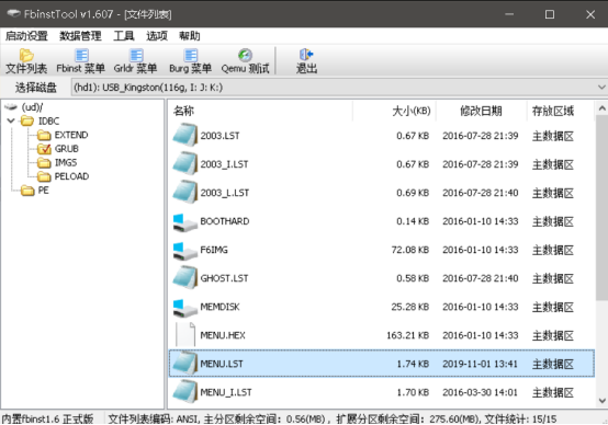 之后一步就基本成了。要使用FbinstTool工具去修改,MENU.LST 文件。