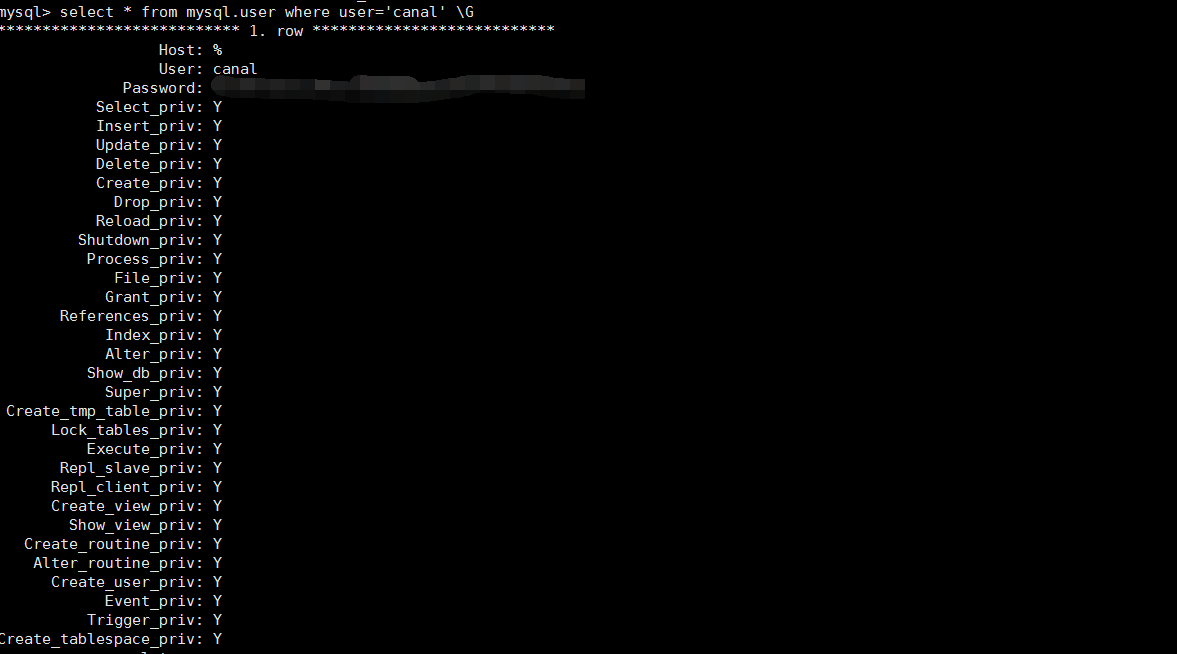 GRANT ALL PRIVILEGES ON test_canal.user TO 'canal'@'%';