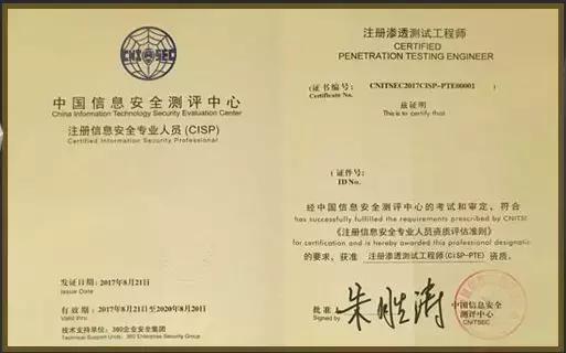 在目前可以通过考试获得的国家认证证书中,CISP-PTE(渗透测试工程师)证书的含金量是最高的。
