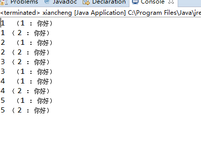 2.创建两个线程,每个线程按顺序输出5次“你好”,每个“你好”要标明来自哪个线程及其顺序号。