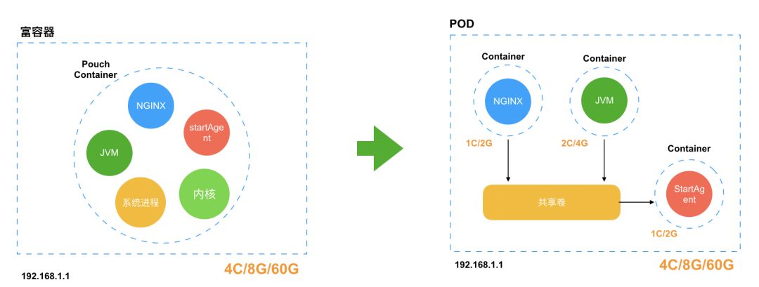 通过容器化设计模式,把基础设施下沉与业务解耦,代码运行环境对业务透明化
