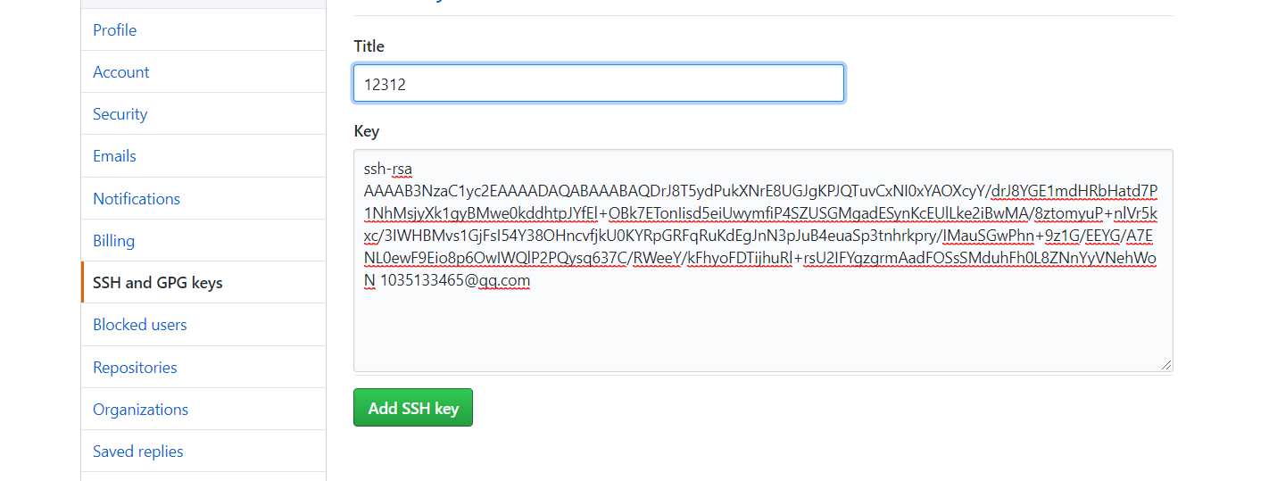 然后到当前目录生成公钥ssh-keygen -t rsa -C “你的邮箱”