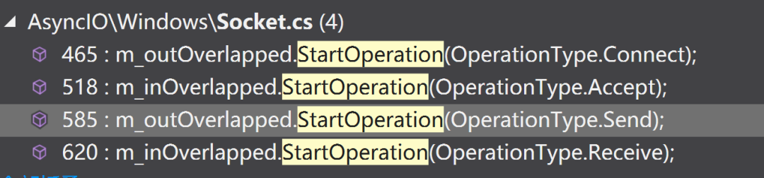 因此在重叠操作处理的时候,我们通过m_inOverlapped.StartOperation(OperationType.Receive);设置重叠对象的InProgress属性为true,表示重叠操作正在处理中。