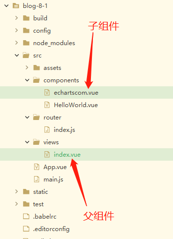 打开项目,创建views文件夹,存放父组件index.vue,在components文件夹下创建echartscom.vue子组件,如图3所示。echartscom.vue中主要放option(),用来实现图表渲染,index.vue存放数据,echartscom.vue引用index.vue的数据从而形成父子组件间的传值。