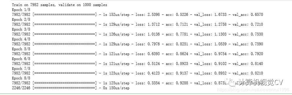 网络在训练8 轮后开始过拟合。我们从头开始训练一个新网络,共8个轮次,然后在测试集上评估模型。