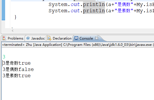 System.out.println(a+"是奇数"+My.isOdd(a));