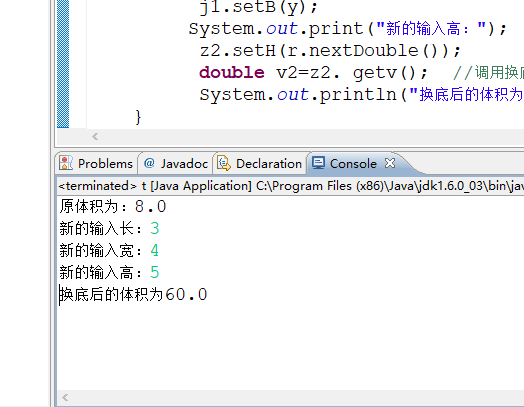 /**zhuti类中,三个成员变量:矩形对象、高和体积,三个方法:一个构造方法进行成员变量初始化,两个功能方法计算体积及换底。