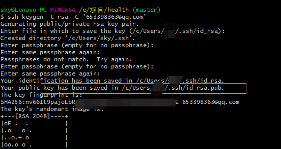 $ ssh-keygen -t rsa -C "653398363@qq.com"