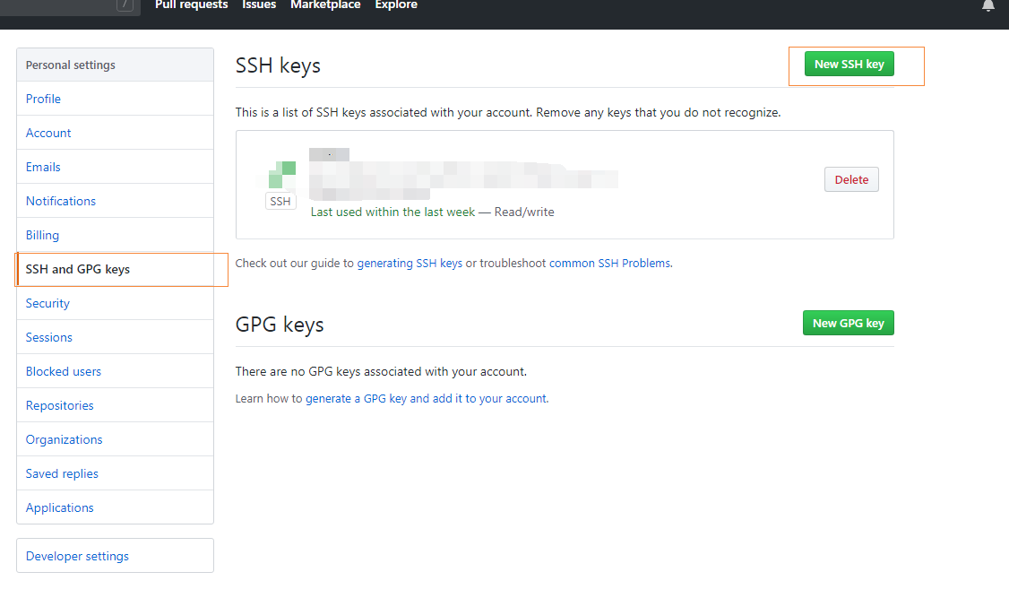 6,ssh只是本地详细,需要在Github中备份,才能被验证。打开自己的Github,在github 网站上添加一个密钥. 也就是新建密钥,复制确定就好了.