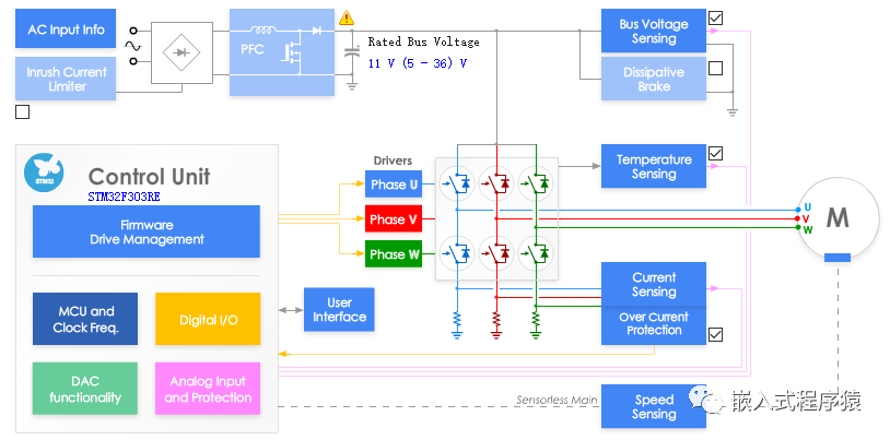 电机控制历来是芯片半导体厂家的必争之地,在公众号里多次介绍过NXP的电机控制平台,从直流无刷,到永磁同步到交流异步,包括项目中的使用探讨情况,最近在用ST的片子,ST同样提供很好的电机控制和参考设计平台,