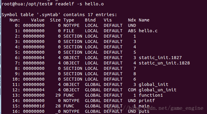 我们可以用nm命令查看一下目标文件中的符号:
