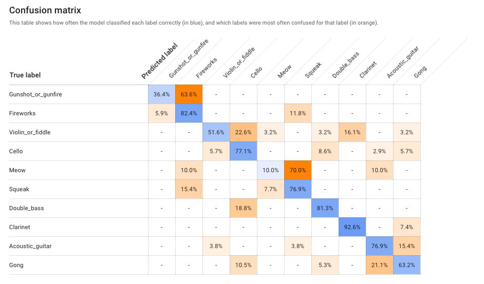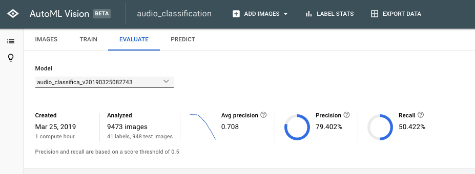 恭喜!只需几个小时的工作,在AutoML Vision的帮助下,现在非常确定使用其频谱图对给定音频文件的分类可以使用机器学习视觉方法完成。