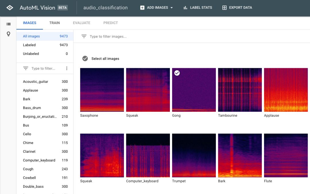 对于给定的音频数据集,可以使用Spectrogram进行音频分类吗?尝试使用Google AutoML Vision。把音频文件转换成各自的频谱图,并使用频谱图作为分类问题的图像。