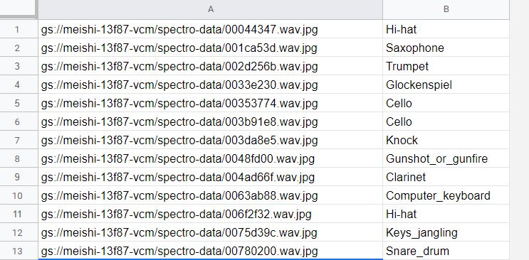 使用之前下载的元数据创建了以下CSV文件。删除所有其他列,只保留了图像文件位置及其标签,因为这是AutoML所需要的