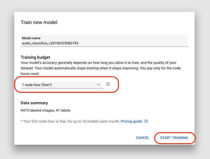 对于实验,选择1节点小时(免费*)作为训练预算,并开始训练模型并查看其执行情况。
