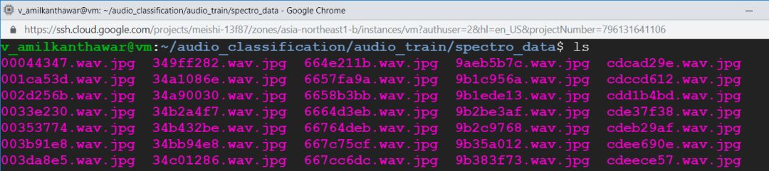 使用以下shell脚本将所有音频文件转换为各自的频谱图(在“audio_data”文件夹所在的目录级别创建并运行以下shell脚本)