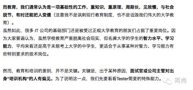 客观来看,其实应该这么看待 IT 培训机构的学员:他只是花了一笔性价比不高的学费,找了一个类似学校的地方学了一些东西,和别人并无什么不同,如果他对技术有兴趣,有自我学习能力,一样可以做一个优秀的Tester ~