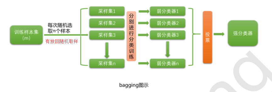 - Bagging 是一种个体学习器之间不存在强依赖关系、可同时生成的并行式集成学习方法。