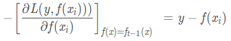 此时不同的损失函数将会得到不同的负梯度,如果选择平方损失