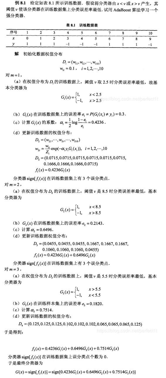 3.结合一个例子来理解整个算法的流程,这个例子摘自李航《统计学习方法》: