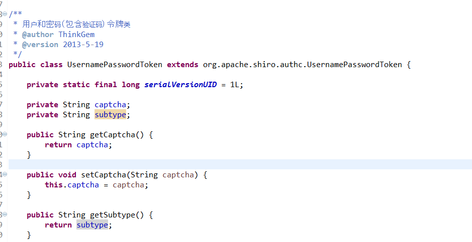 我的UsernamePasswordToken是继承了org.apache.shiro.authc.UsernamePasswordToken然后添加了subtype字段的,这是ThinkGem大师的代码