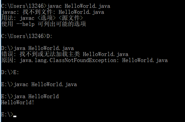 再键入java HelloWorld 按下Enter键就可以运行程序。