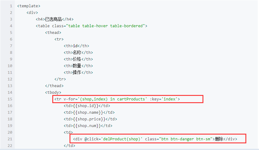 - 还有一个小功能就是已选商品中的有个删除的按钮,实现这个功能,cart.vue组件中修改