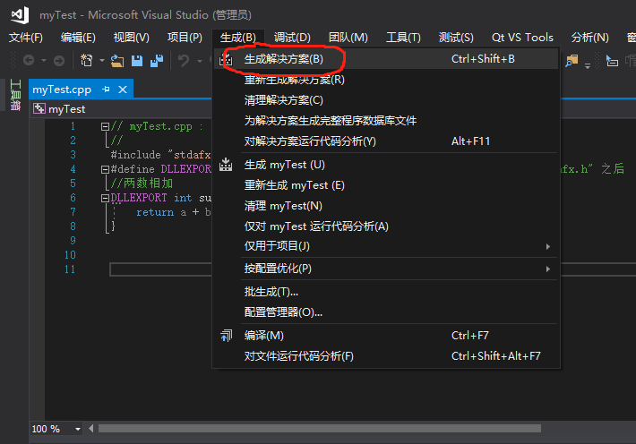 注意:导出函数前面要加 extern "C" __declspec(dllexport) ,这是因为ctypes只能调用C函数。如果不用extern "C",构建后的动态链接库没有这些函数的符号表。采用C++的工程,导出的接口需要extern "C",这样python中才能识别导出的函数。