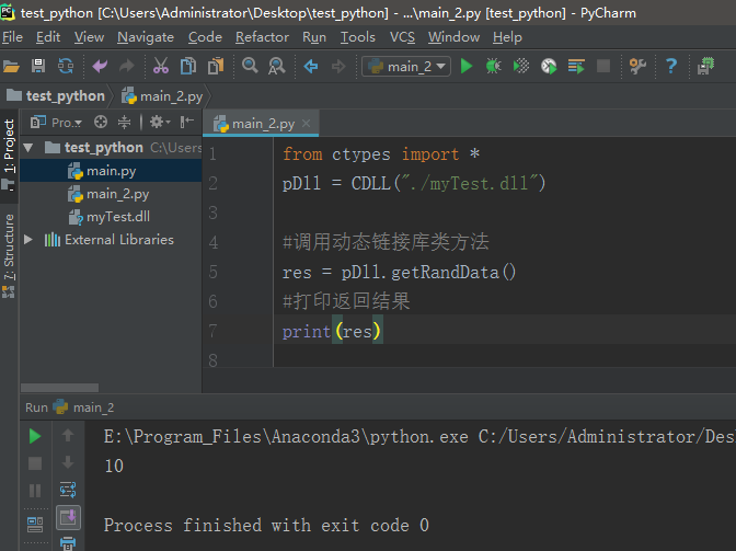 用python将动态链接库导入,然后调用动态链接库的函数。为此,新建main.py文件,输入如下内容: