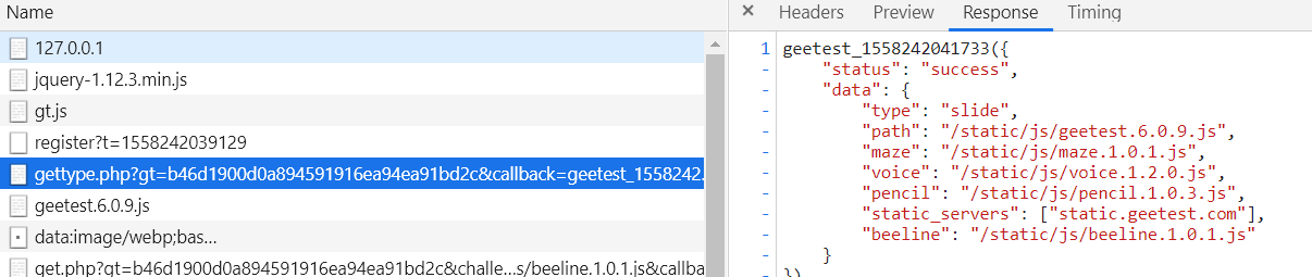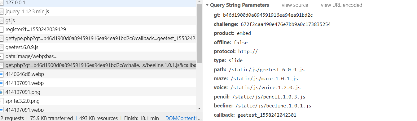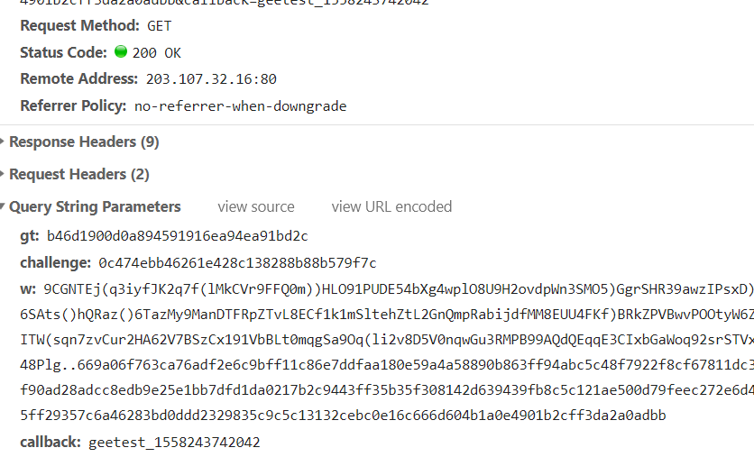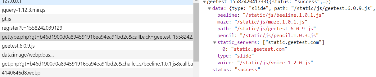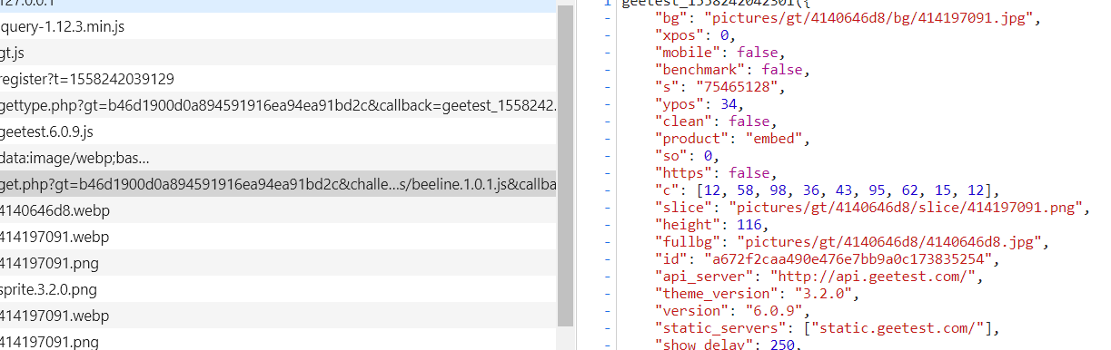 可以得到的参数有challenge和gt和一些js路径:
