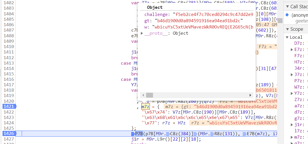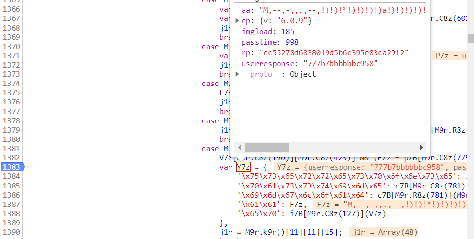 最重要的是参数w,通过调试得知在geetest.6.0.9.js里