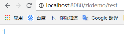 2.7 启动项目在浏览器输入地址http://localhost:8080/zkdemo/test查看效果