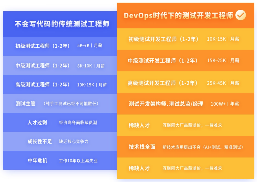 从功能测试转到测试开发,是测试人职业发展的必经之路。毕竟如上所说,现在的大环境告诉我们,单纯的功能测试真的无法满足企业需求。你不变,那就等着被淘汰……