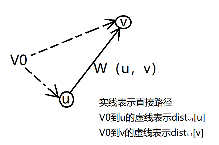 distn-1[u]为从源点v0出发最多经过不构成负权值回路的n-1条边到终点u的最短路径长度