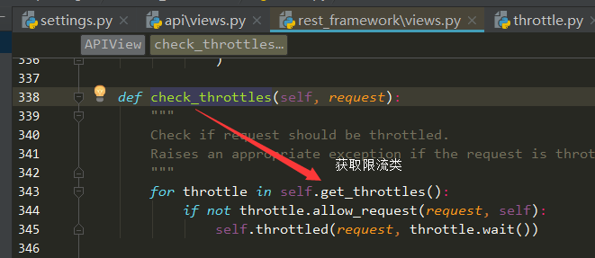 节流又叫限流,限制访问。就是通常一个用户在多次请求一个页面,或者点击一个链接的时候,前几次点击是没有问题的,但是一旦连续几次之后,就会出现访问受限,离下一次访问还有50秒等的字样,在<code>django rest framework</code> 中有一个专门的组件来做限制访问。