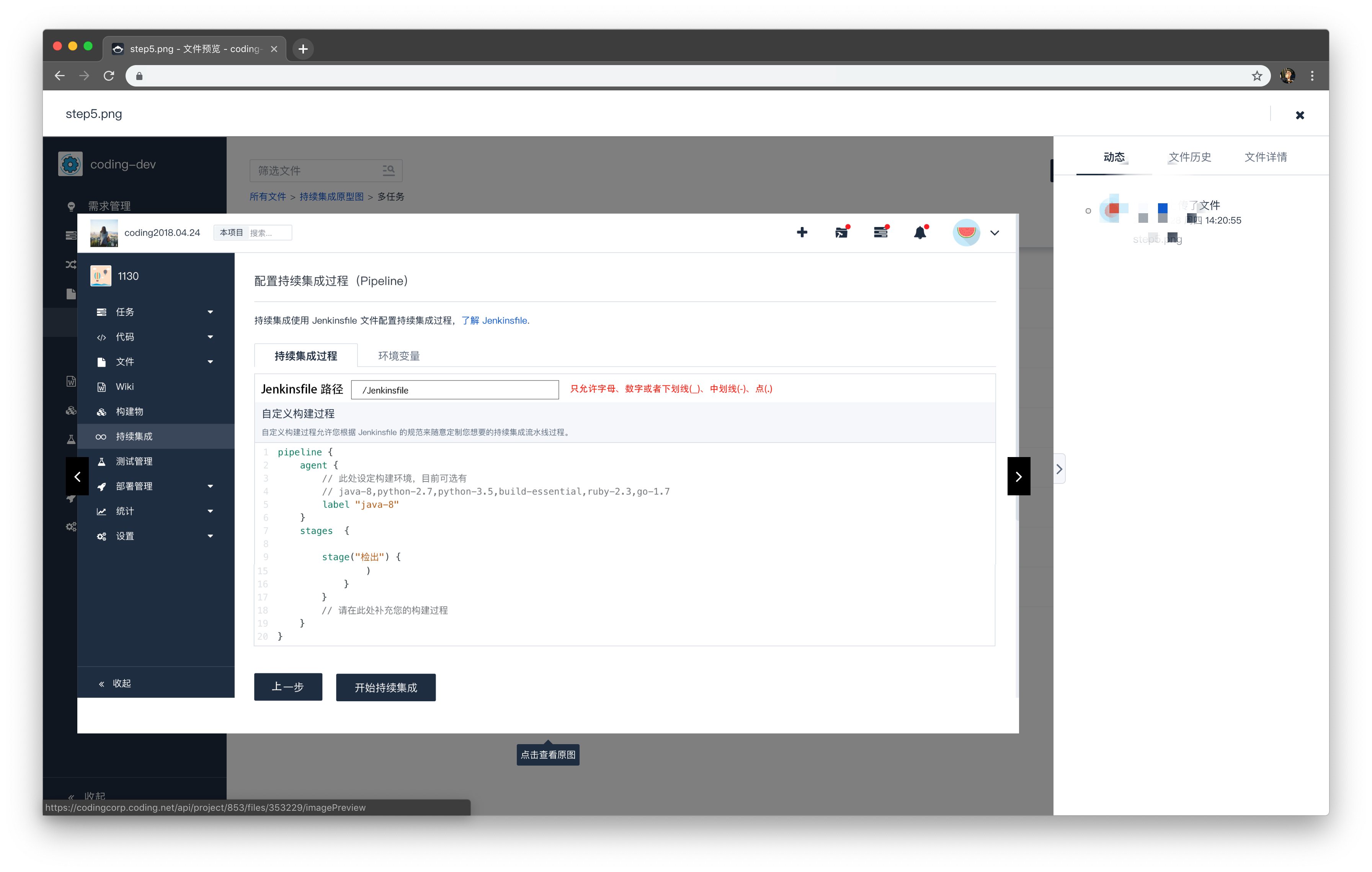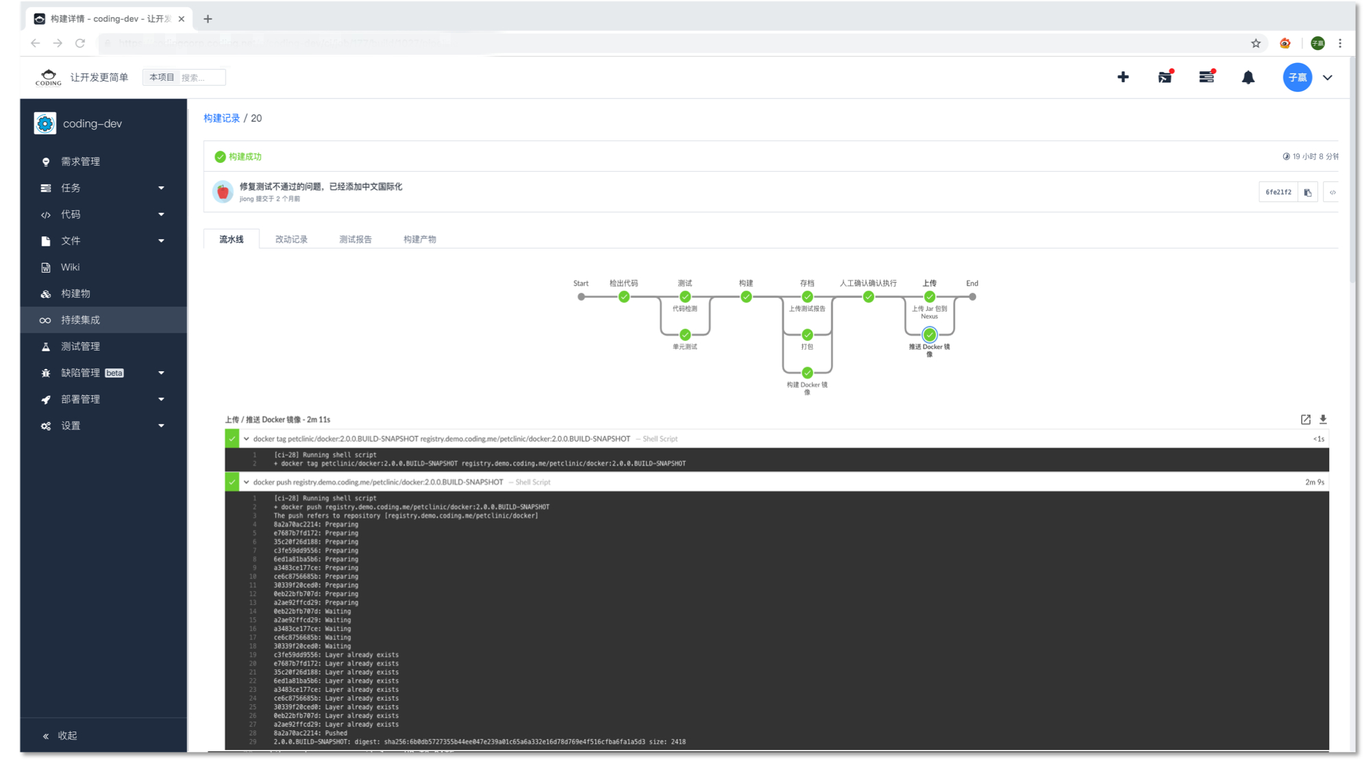 当开发人员 push 代码时,将会自动触发已设置好的持续集成,CODING 的持续集成会自动编译并测试该 commit。CODING 持续集成支持在任意阶段触发并支持 cvm 模式。