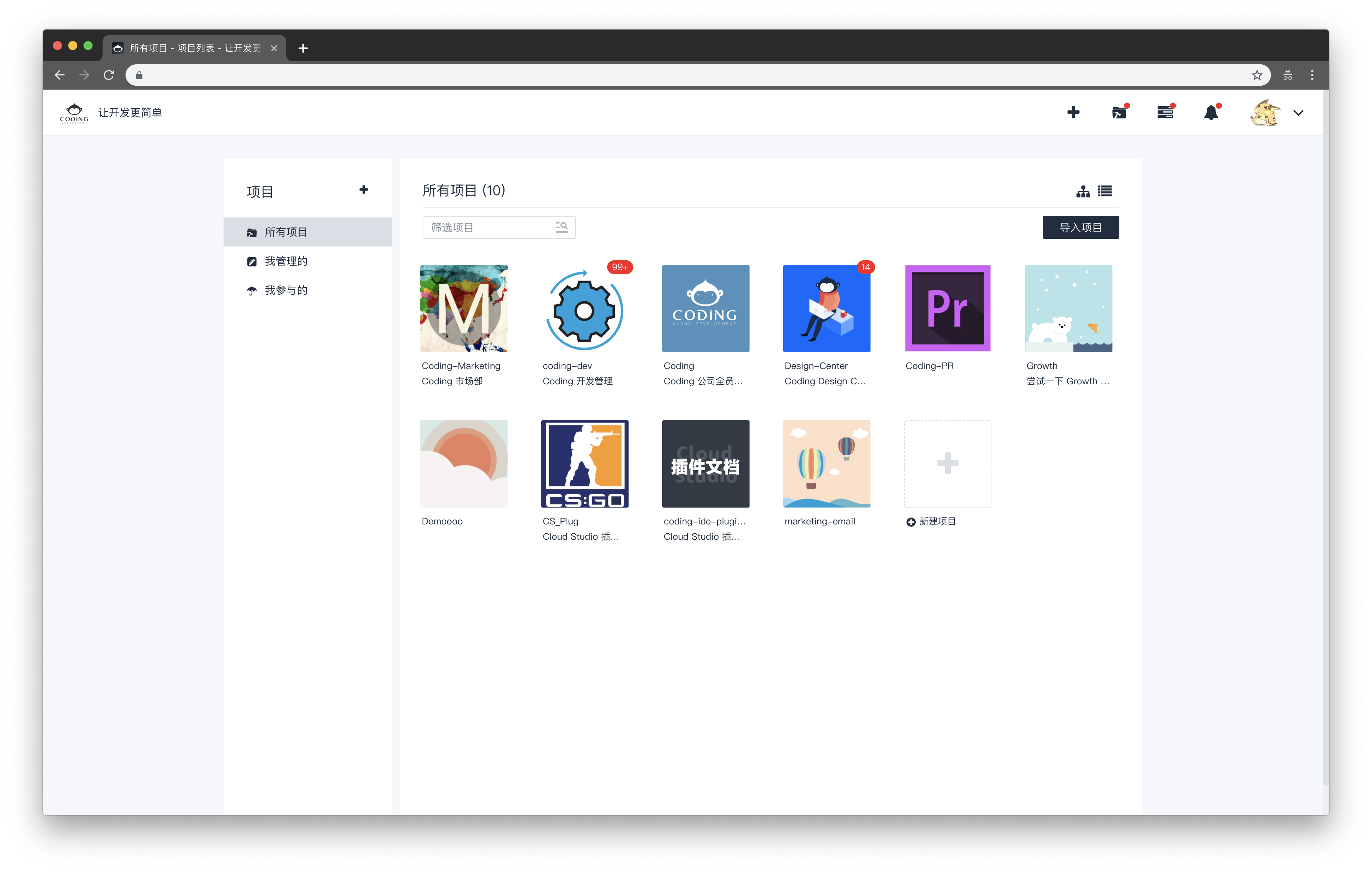 CODING 研发管理系统是基于项目进行的,我们依据组织架构建立了相关项目并使用【成员管理】添加相应部门的人员。通过项目这种扁平化的管理形式,帮助企业加快反应速度,提高自身敏捷性。