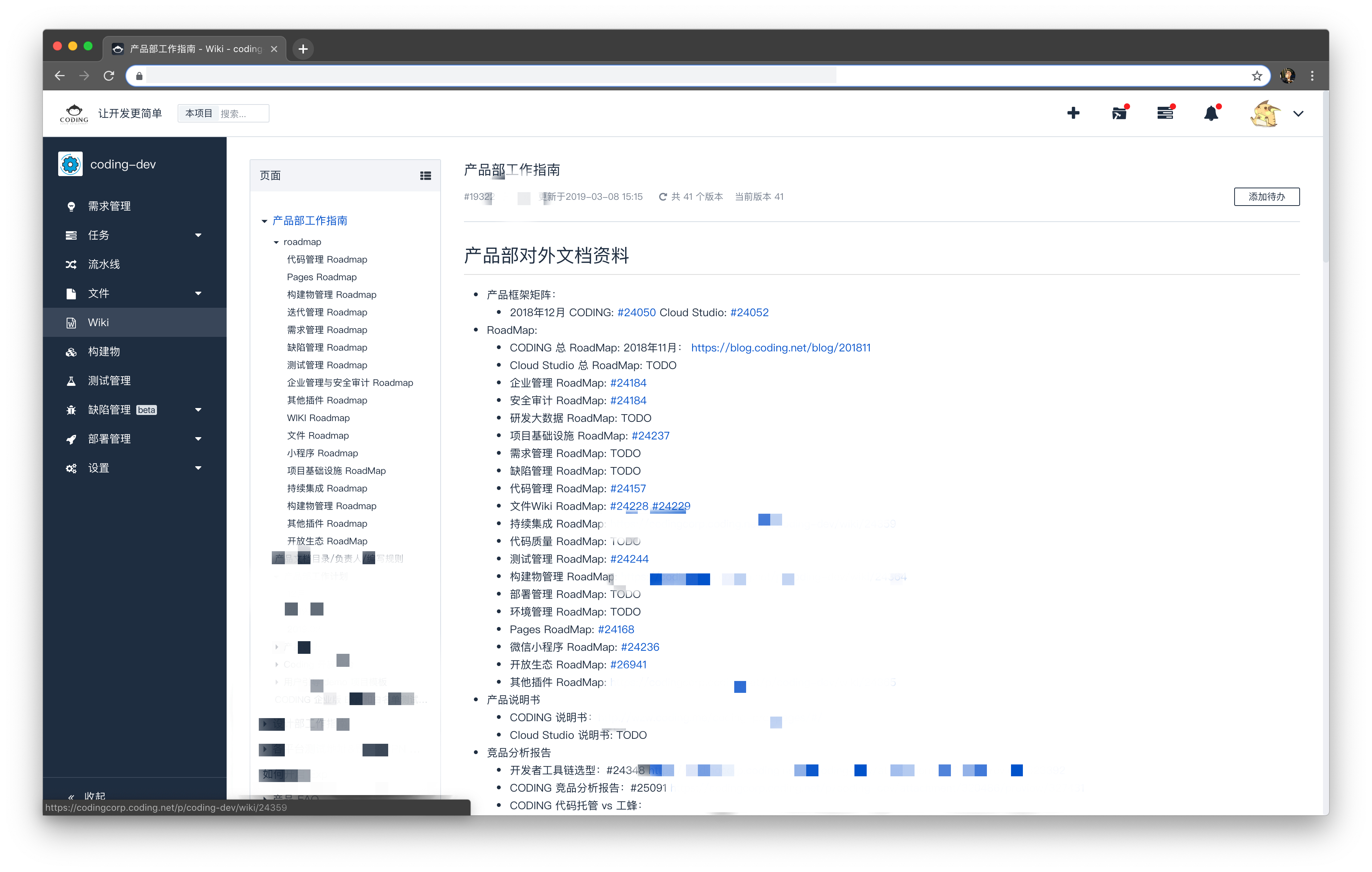 在确认功能顺利上线后,产品经理会在 CODING Wiki 中更新 Roadmap,提示功能已经上线。方便市场部进行 Campaign 的计划。