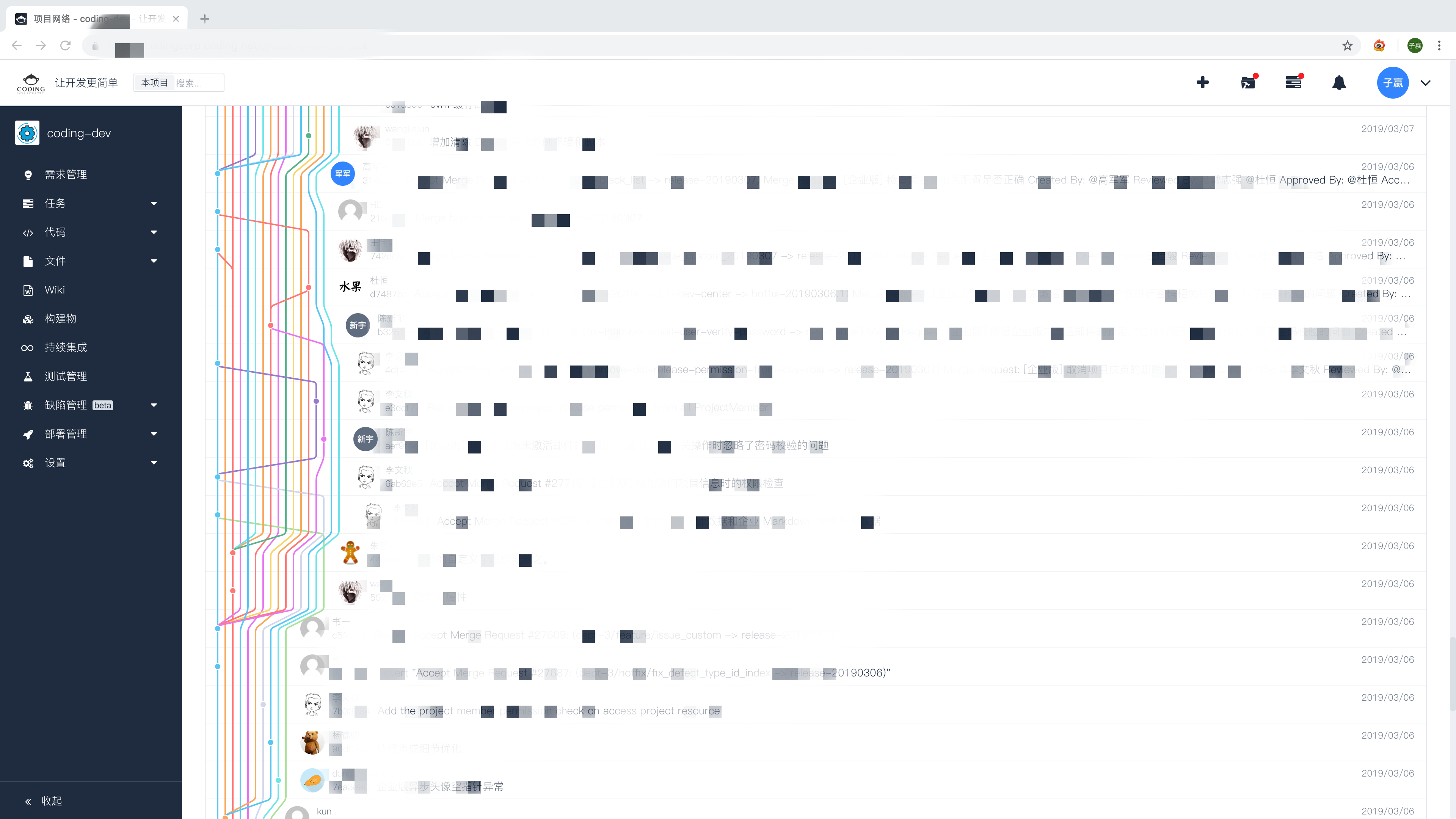 CODING 现在的团队有 100 多人,分布在全球各地(深圳、北京、成都、西雅图等),均使用 CODING 研发管理系统作为云端协作平台。在 CODING,不仅研发相关的团队使用 CODING 来进行研发管理,市场、运营、行政的部门也同样使用 CODING 进行任务分配与追踪、文件分享等日常工作。
