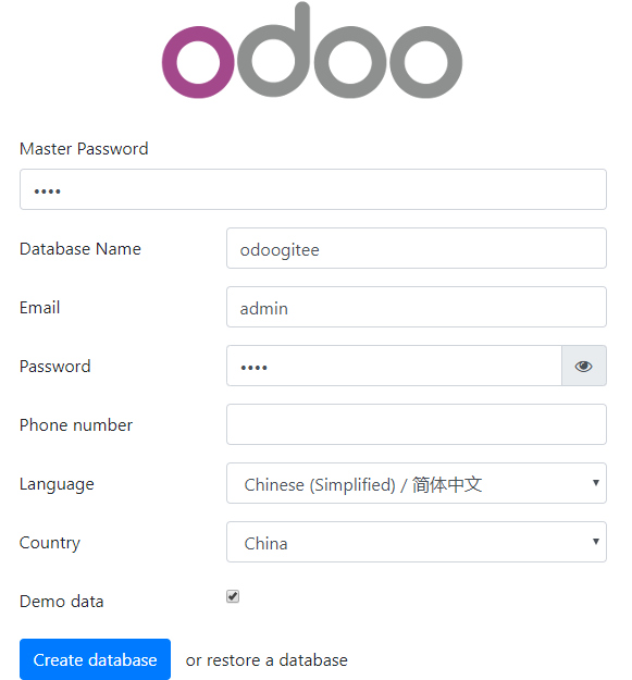 - password:odoo管理员密码
